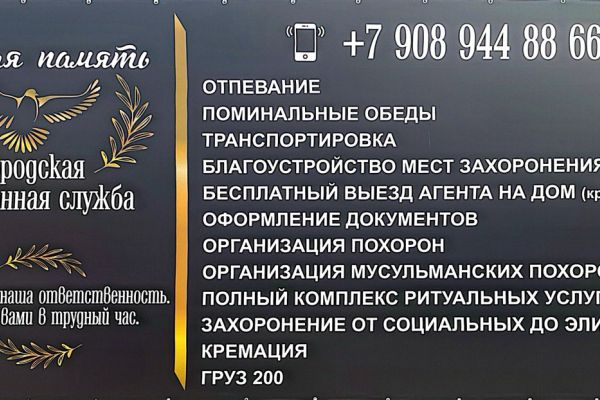 Мы предоставляем качественные похоронные услуги, обеспечивая поддержку и заботу в самые трудные моменты жизни. Мы стремимся создать атмосферу уважения и достоинства, помогая семьям достойно проводить своих близ...
